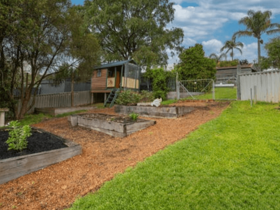 This house is a delight, with its great design, with its ample gardens, beautiful roses. And a backyard with lots of different fruit trees and three raised garden beds. A simple Retic system is in most areas. Plus a cubby/slash chicken coup. Materials to finish a good chicken coup and run included in the price.