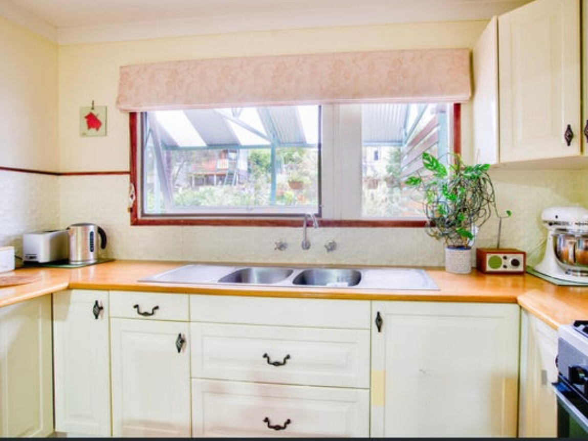 The rather new kitchen is terrific, with ample cupboards and lots of drawers. Plus a corner cupboard the shelves turn, perfect for all your pots. The island bench has drawers both sides. And is on coasters. There is also a cupboard with heavy duty pull out shelves for your collection of pans. (Good for cast iron ones) the top quality stove has gas hot plates. Plus both an air fryer and pizza oven within!