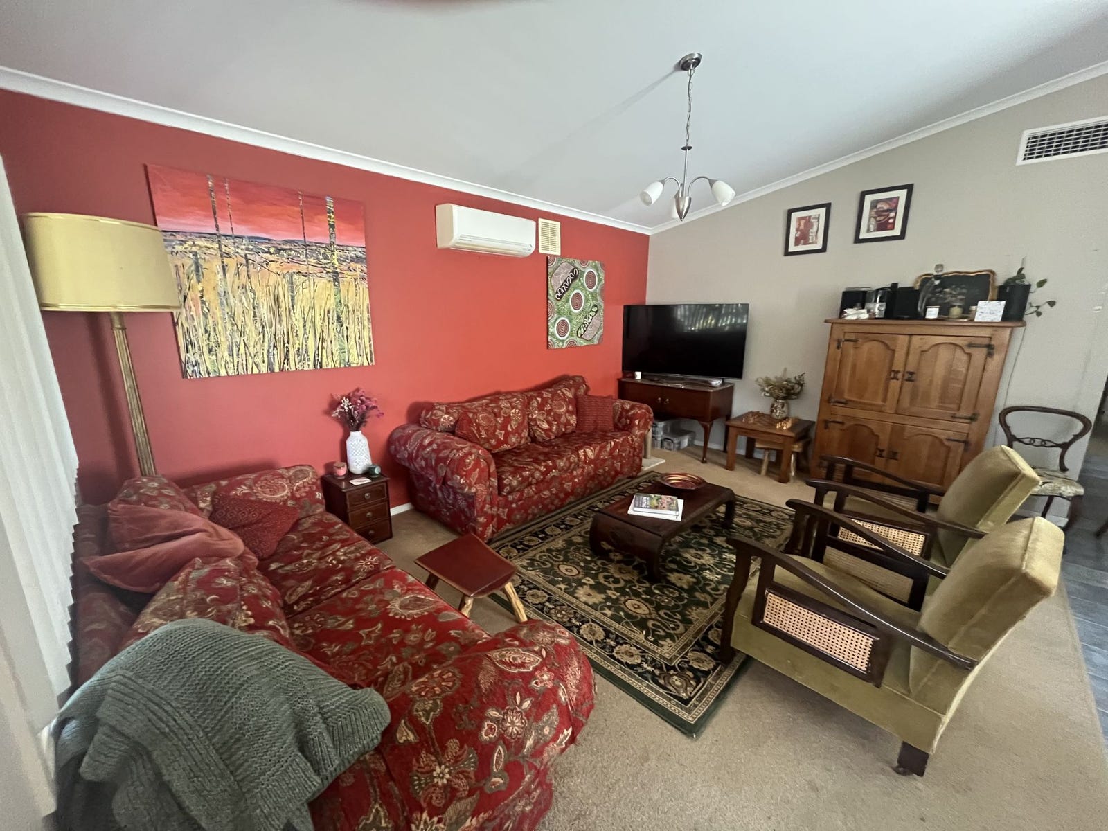 From the front veranda you enter the home into a spacious living area with high ceilings and an effective reverse cycle air conditioner, flowing into the open plan kitchen dining area - cosy and warm in Winter, and quick to cool in Summer.